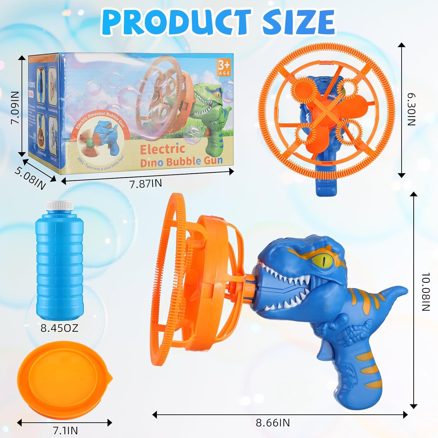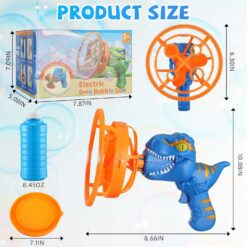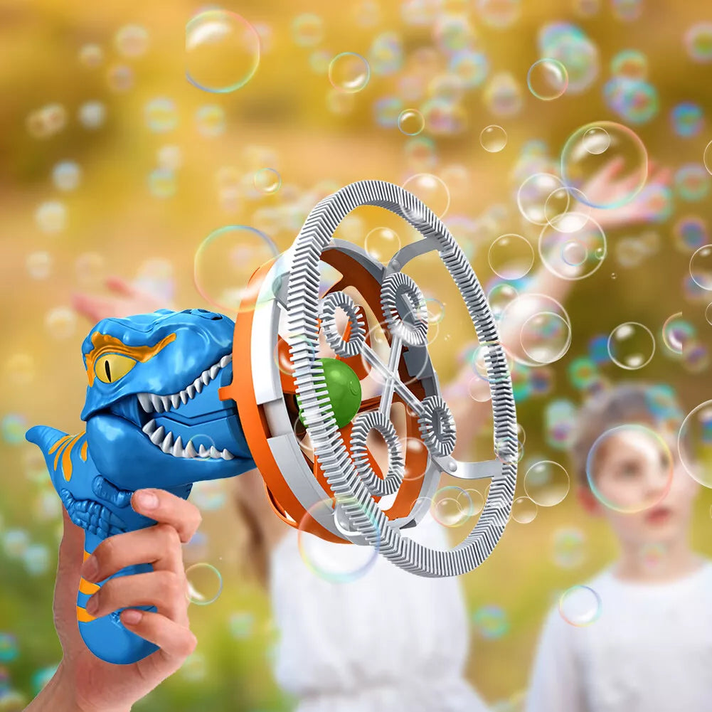 This revolutionary toy transforms ordinary playtime into a prehistoric bubble-blasting adventure! Designed to captivate and entertain, this dynamic gadget brings endless joy to children of all ages. It also turns into a little portable fan if you need one during hot summer days!