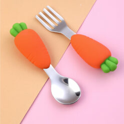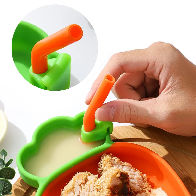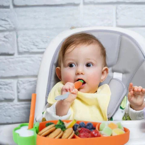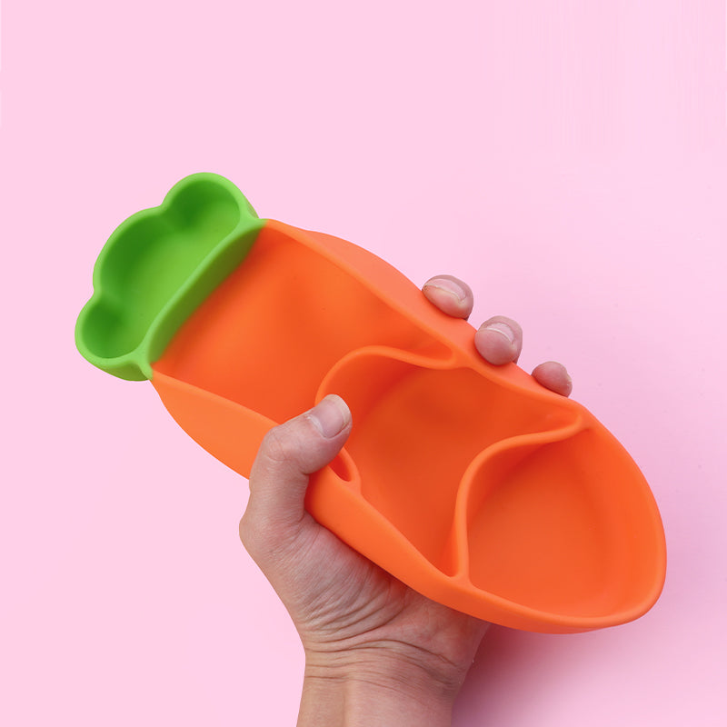 The set features a charming carrot-shaped plate with 3 compartments, ideal for introducing a variety of foods and promoting balanced nutrition. The strong suction base keeps the plate securely in place, minimizing spills and messes during mealtime.