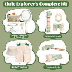 A vest, a butterfly net, a flashlight, goggles, binoculars, and so many more gadgets. This kit comes with a whopping 14 tools and accessories safely packed in a carrying bag. There’s not a single scenario your kid won’t be prepared for.