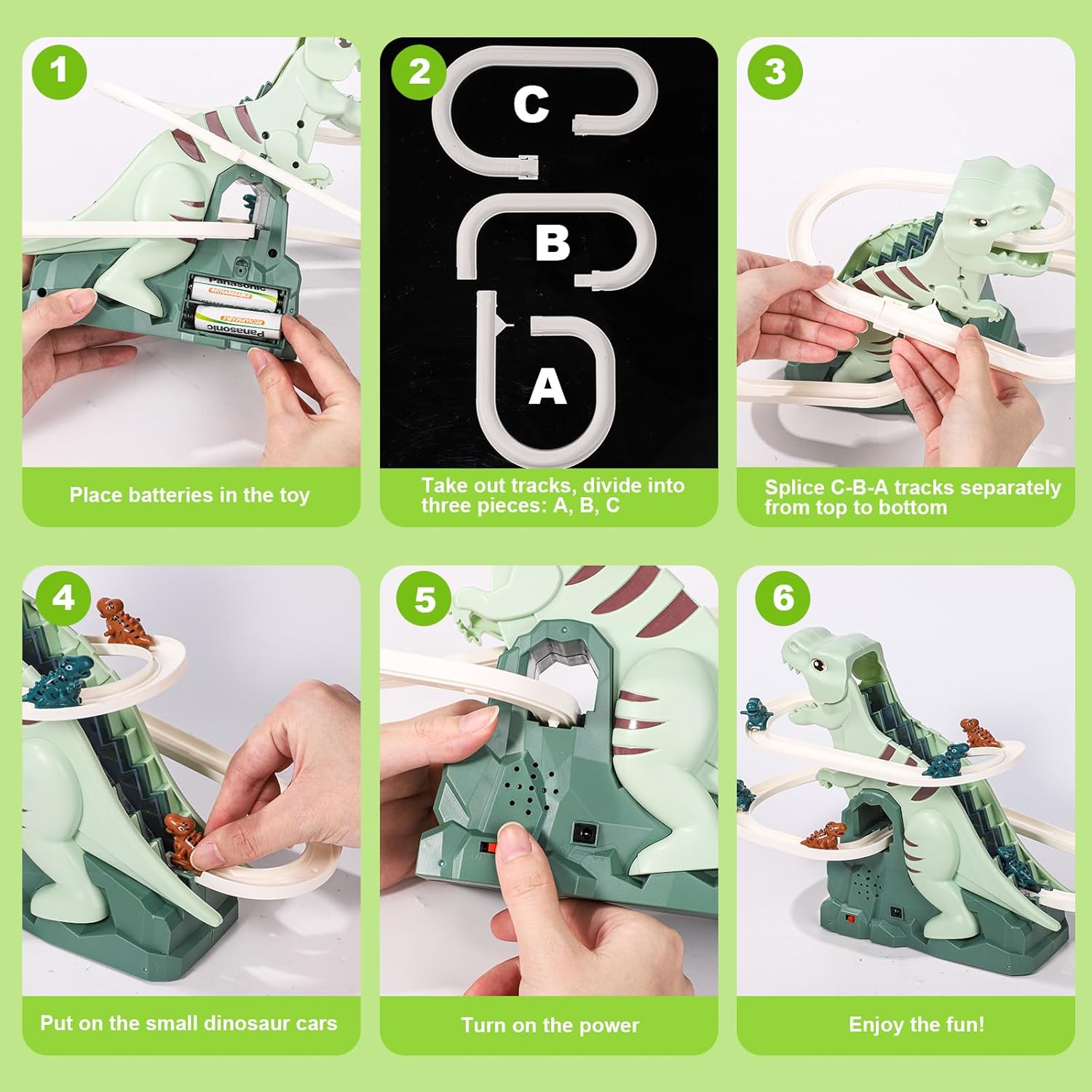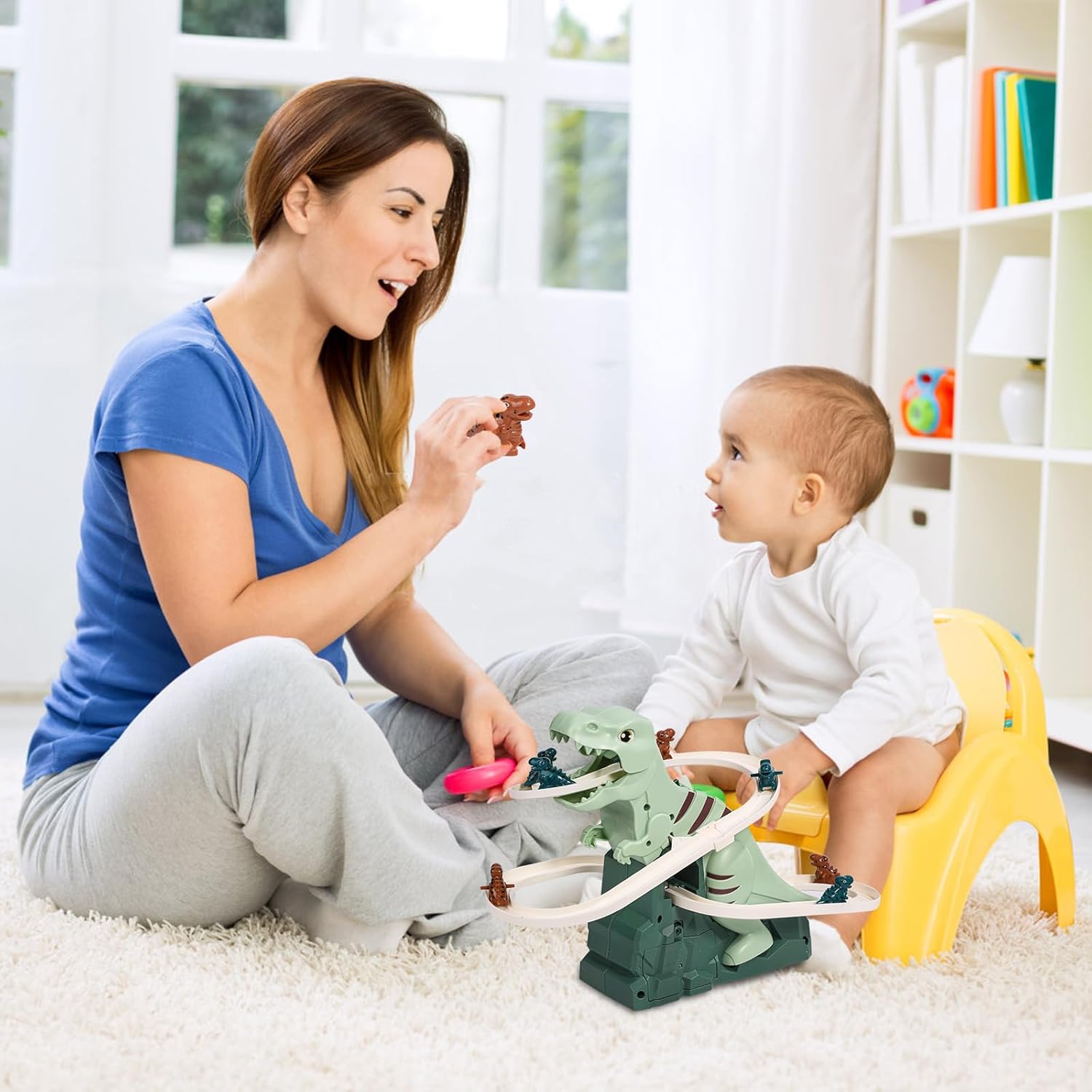 Why play with boring toys when your child can launch dinosaurs into a light-and-sound adventure With the T-Rex Slide, kids drop mini dinos into the mighty T-Rex and watch them zoom, climb, and glide again and again in a non-stop motion loop.